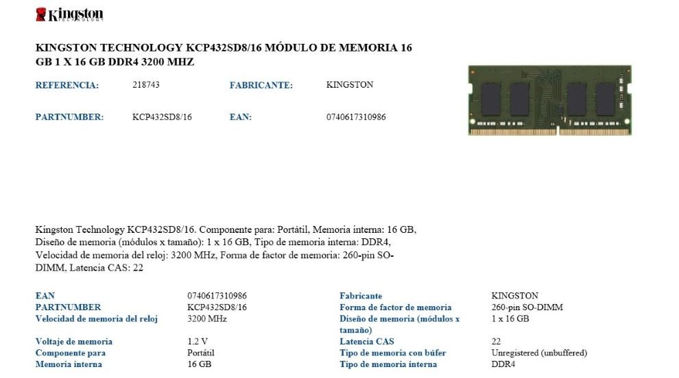 Sé el primero en valorar “Memoria RAM SODIMM KINGSTON / 16GB / DDR4 3200MHz / CL22 / 1.2V / Para Laptop / Verde”