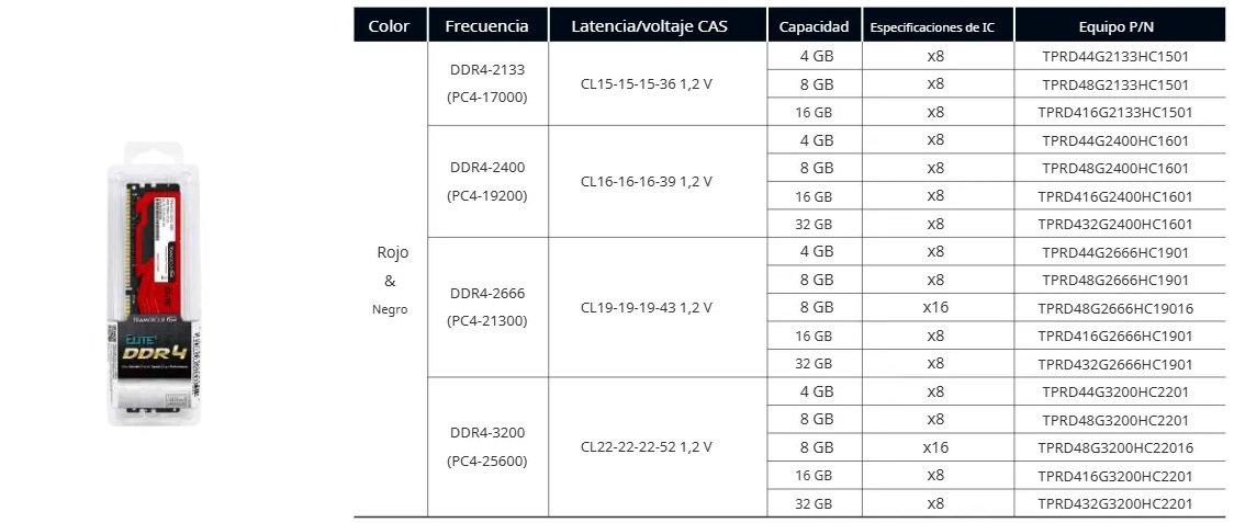 Memoria RAM TEAMGROUP ELITE PLUS / 8GB / DDR4 3200MHz / CL22 / 1.2V / Rojo-Negro