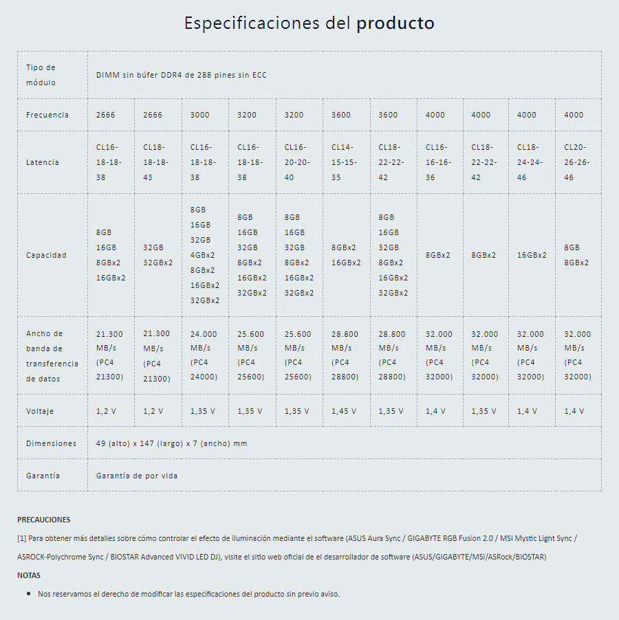 Nota: La precisión de la información, presentación, imágenes, título o especificaciones del producto pueden cambiar sin previo aviso.