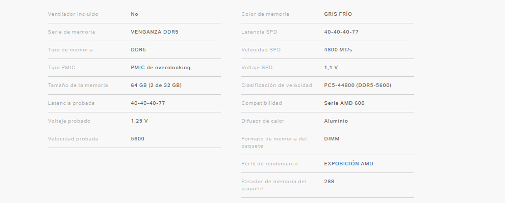 Kit De Memoria RAM CORSAIR Vengance Amd / 64GB (2X32GB) / Ddr5 5600MHz* OC / CL40 / Gris