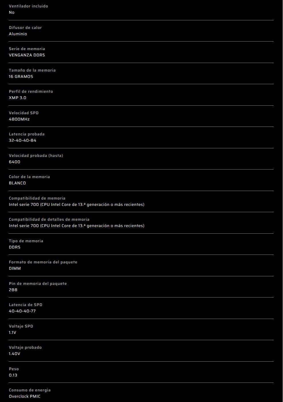 CORSAIR VENGEANCE DDR5, optimizado para placas base Intel®, ofrece frecuencias más altas y mayores capacidades de tecnología DDR5 en un módulo compacto y de alta calidad que se adapta a su sistema.
