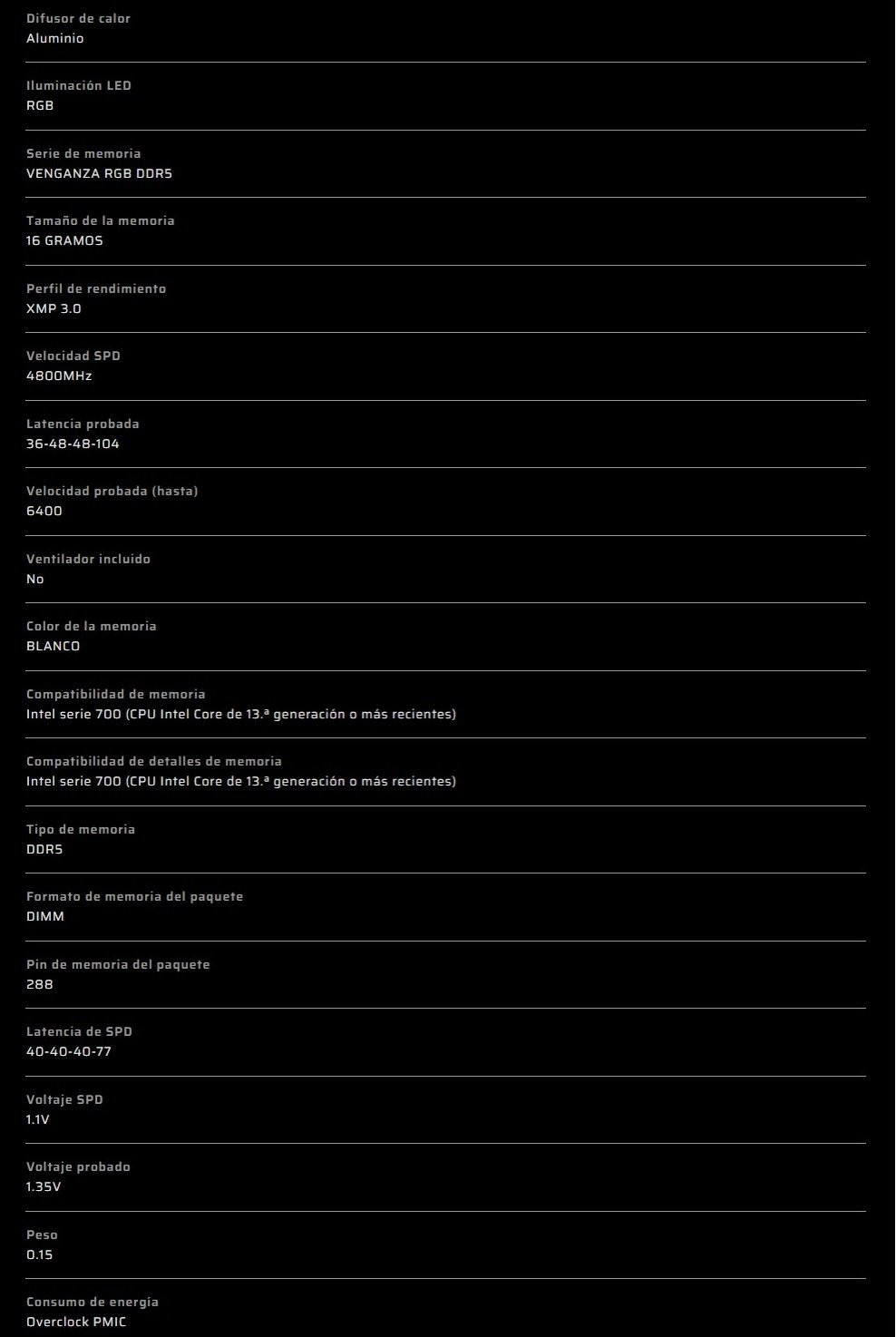 La memoria DDR5 CORSAIR VENGEANCE RGB ofrece rendimiento DDR5, frecuencias más altas y mayores capacidades optimizadas para placas base Intel®, al tiempo que ilumina su PC con iluminación RGB dinámica de diez zonas direccionable individualmente.