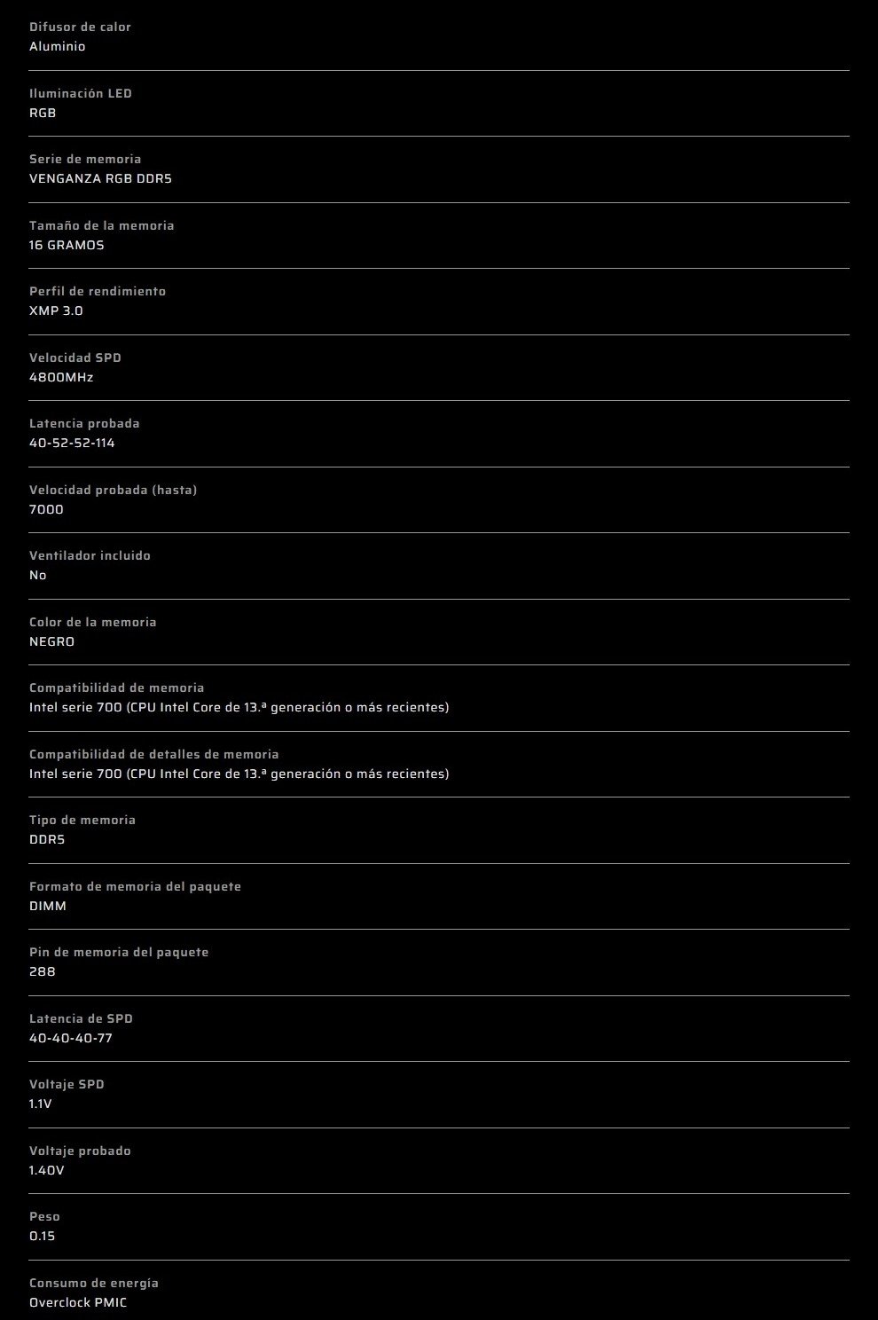 Kit De Memoria RAM CORSAIR VENGEANCE®RGB / 32GB 2X16GB / DDR5 7000MHz / CL40 / 1.1V / DIMM / Color Negro