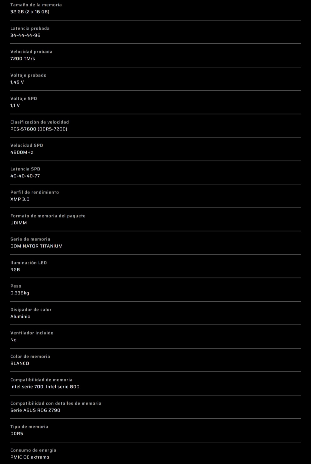 Kit Memoria RAM CORSAIR Dominator Titanium RGB – 32GB 2X16GB, DDR5 7200MHz, CL34, 1.1V, DIMM – Blanco