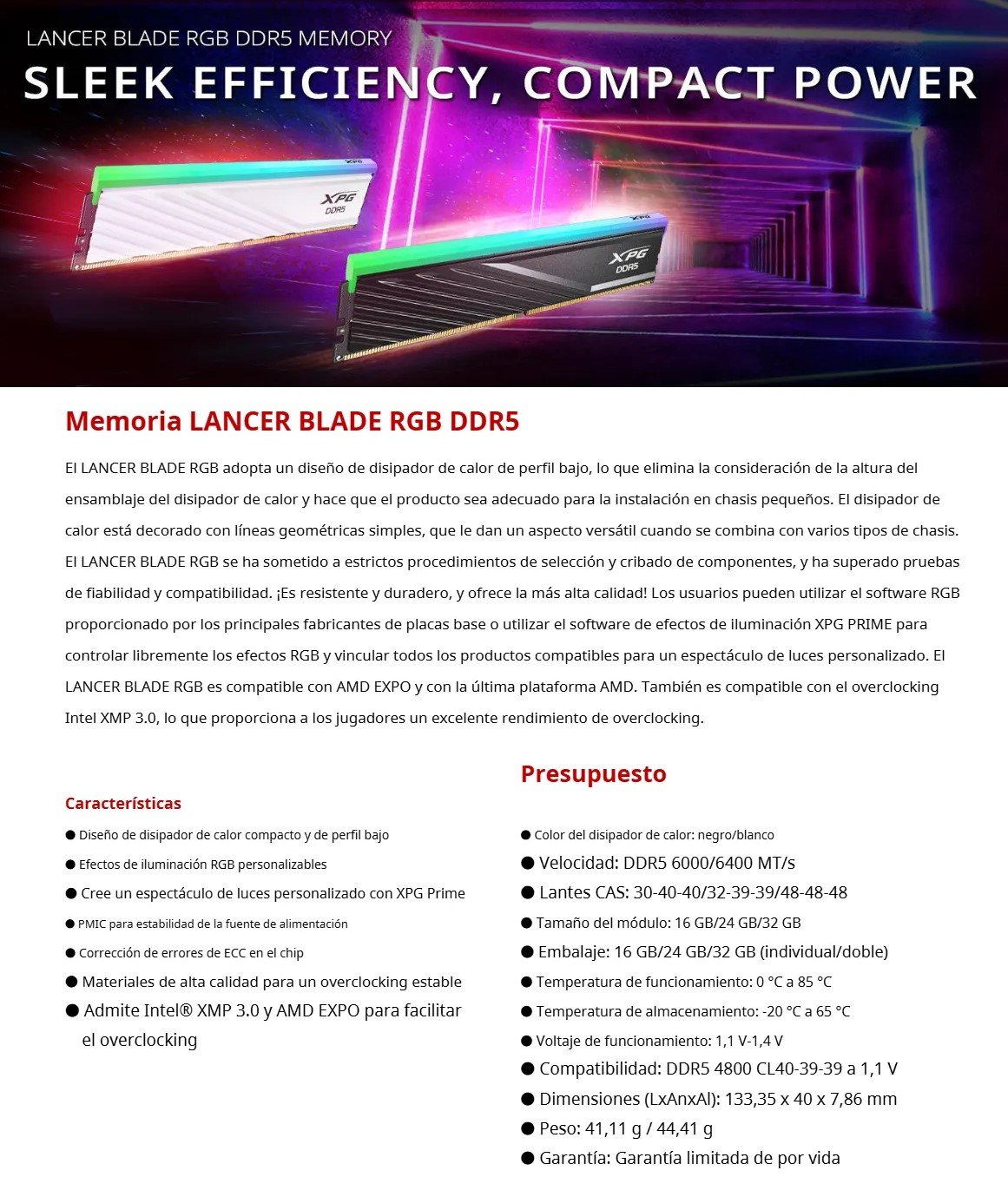 Memoria RAM ADATA XPG LANCER BLADE RGB
