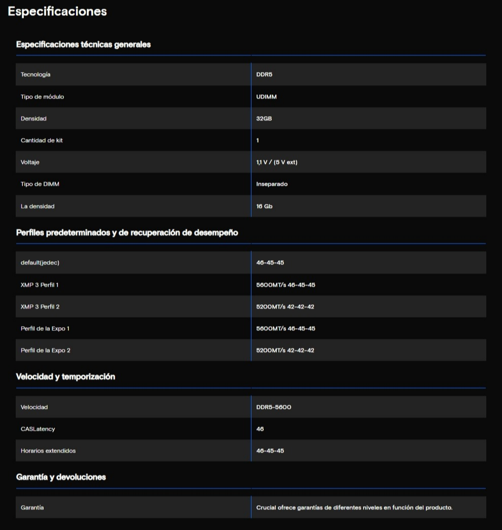 Memoria RAM CRUCIAL CT32G56C46U5 – 32GB, DDR5 5600MHz, CL46, 1.1V – Negro