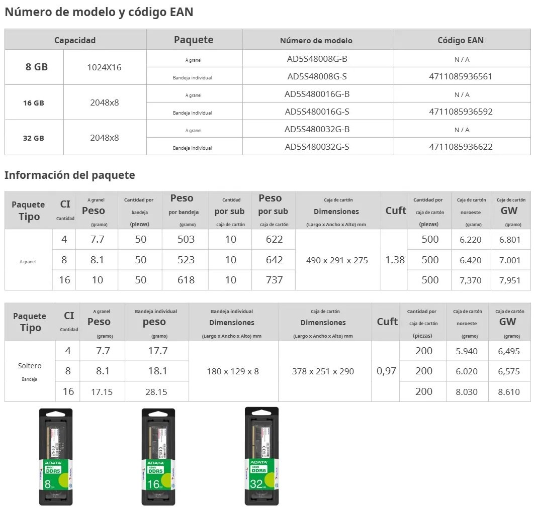 Memoria RAM SODIMM ADATA AD5S480032G-S