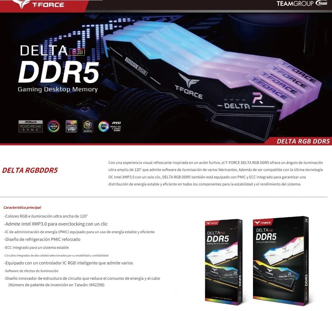 Memoria RAM TEAMGROUP T-FORCE DELTA FF3D532G6000HC38A01 RGB / 32GB / DDR5 6000MHz / CL38 / 1.35V / Intel XMP, AMD EXPO / Negro