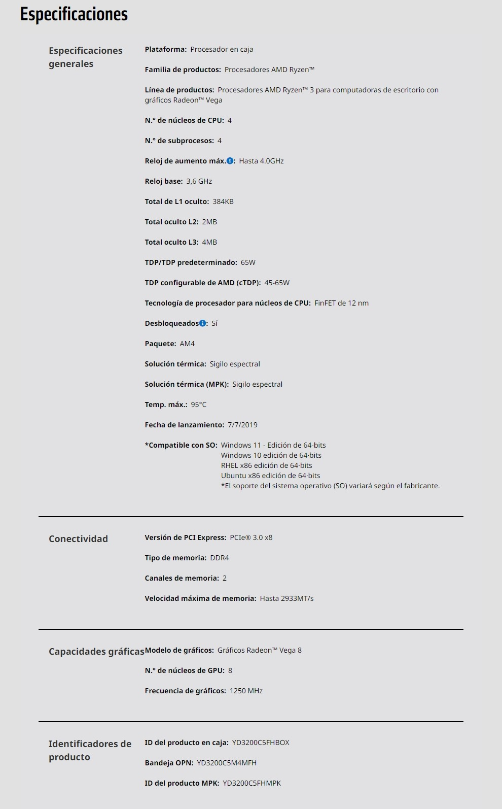 PROCESADOR AMD RYZEN 3 3200G APU