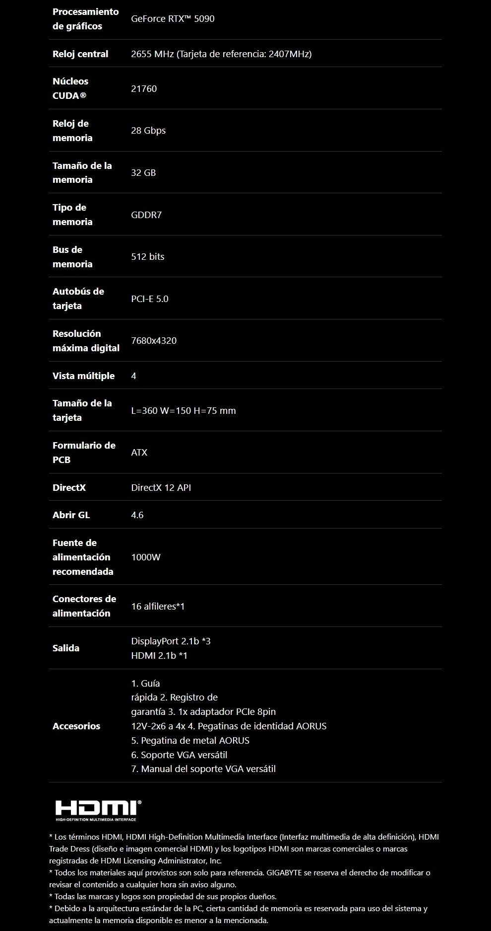 SKU: GV-N5090AORUS M-32GD Categoría: