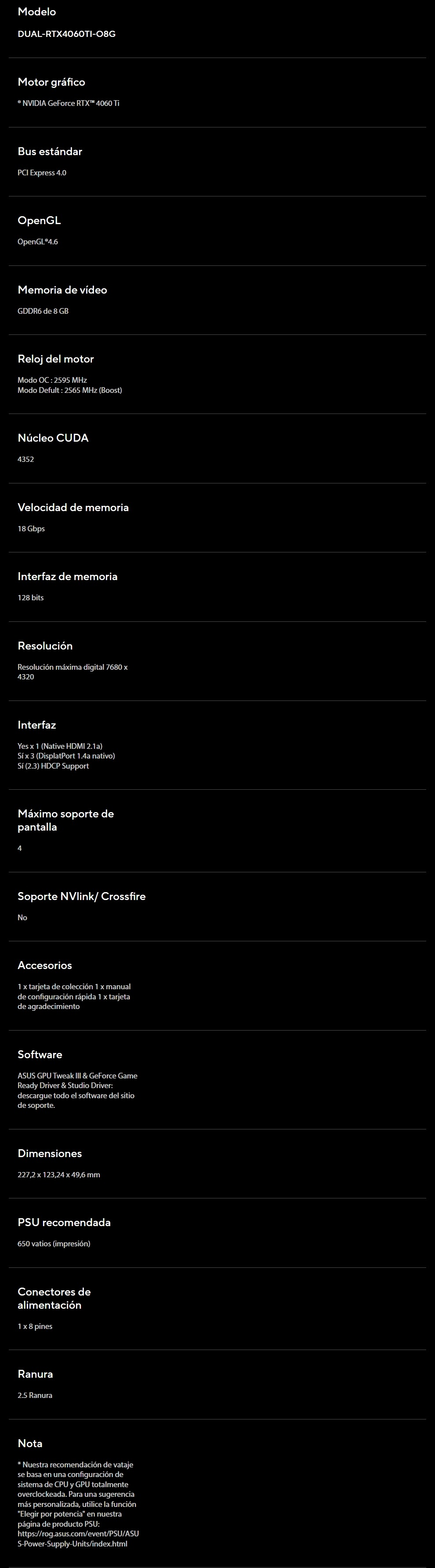 Tarjeta De Video ASUS Dual RTX 4060 Ti 8G