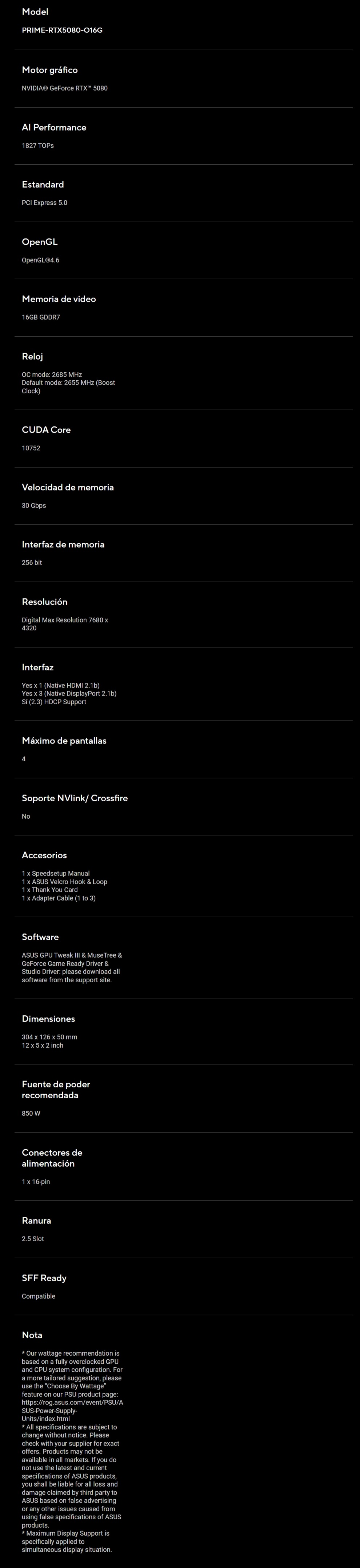 SKU: PRIME-RTX5080-O16G Categoría: