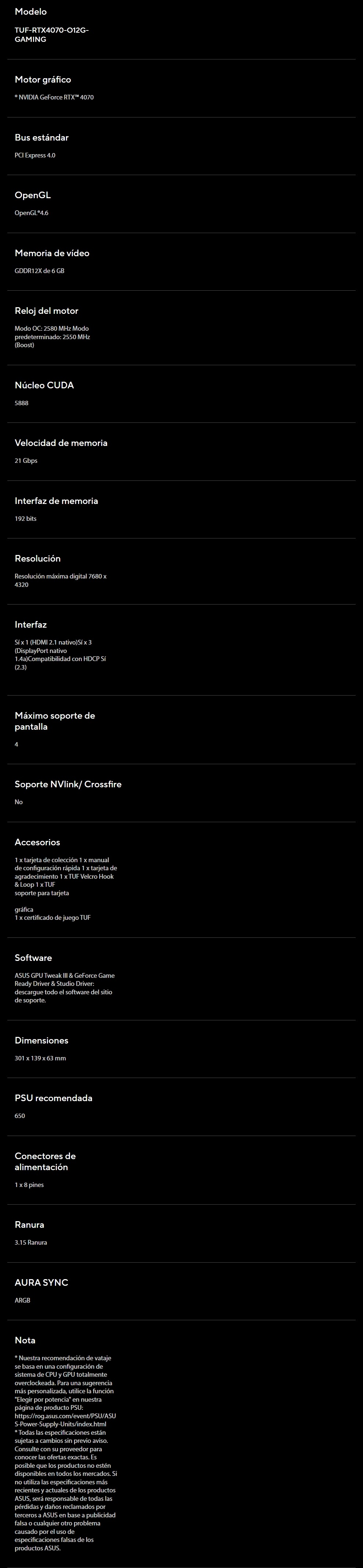 SKU: TUF-RTX4070-O12G-GAMING Categoría: