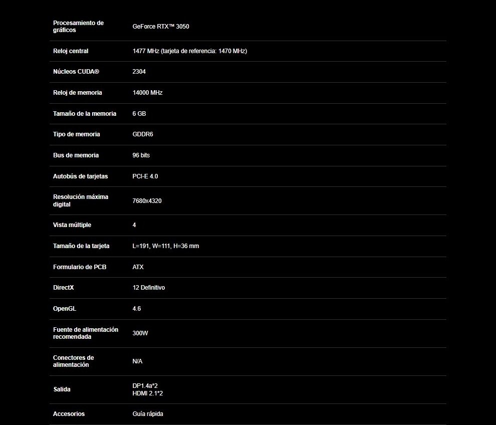 SKU: GV-N3050WF2OC-6GD Categoría: