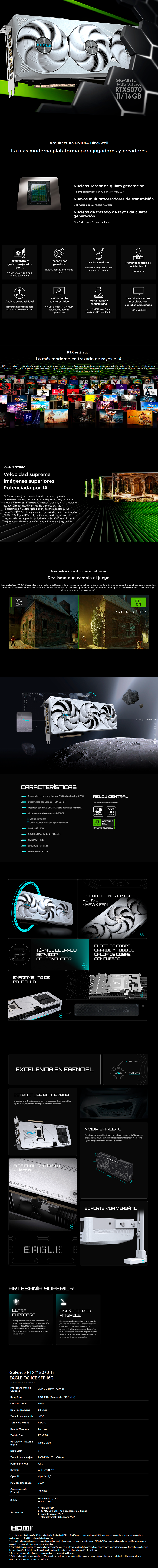 Tarjeta de Video GIGABYTE GeForce RTX 5070 Ti EAGLE OC ICE SFF