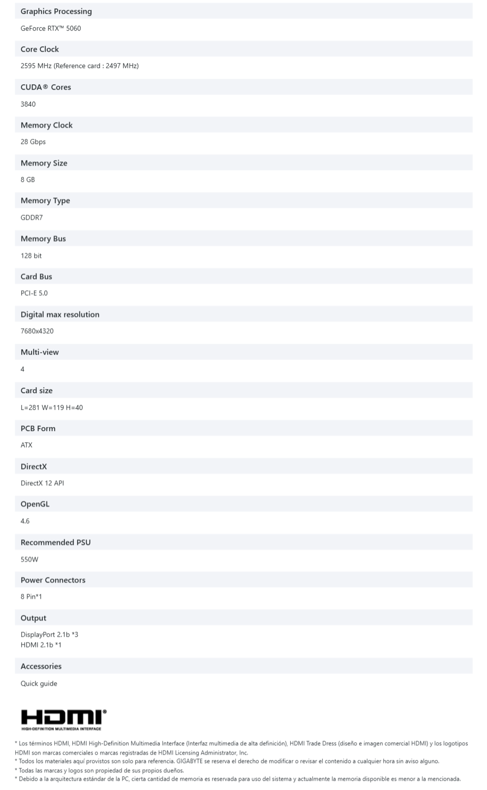 SKU: GV-N5060GAMING OC-8GD Categoría: