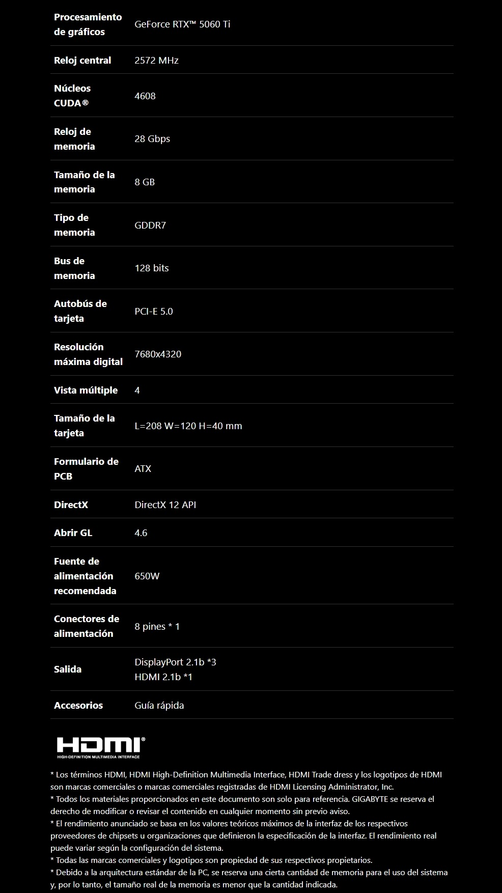 • Integrado con una interfaz de memoria GDDR7 de 8 GB y 128 bits