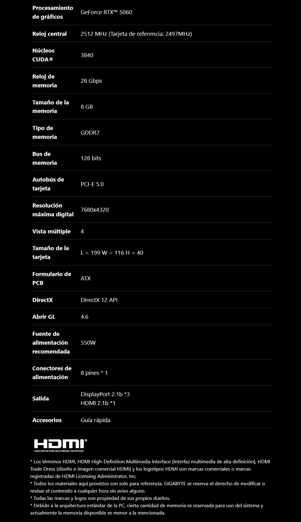 • Integrado con una interfaz de memoria GDDR7 de 8 GB y 128 bits