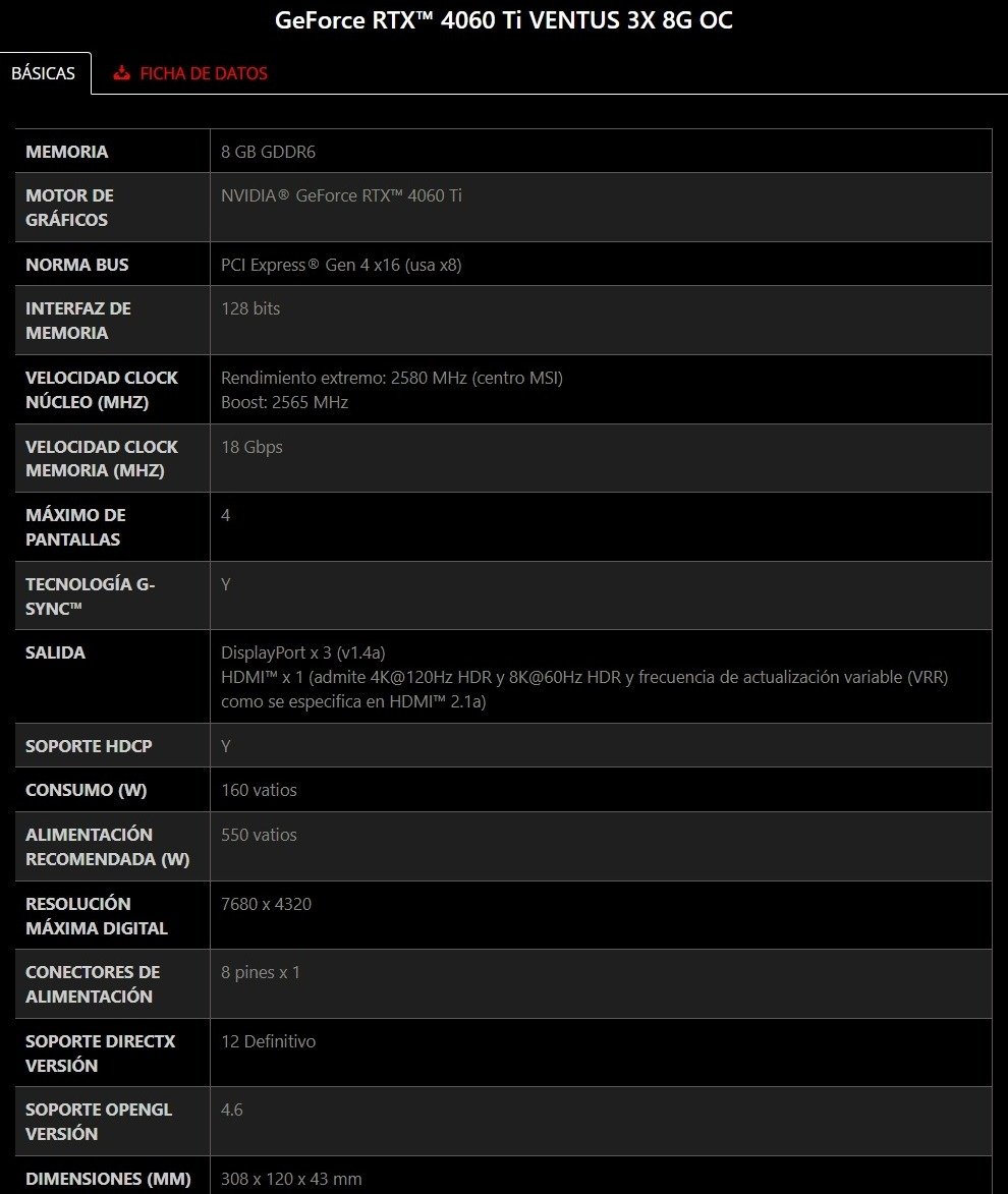 SKU: GEFORCE RTX 4060 TI VENTUS 3X 8G OC Categoría: