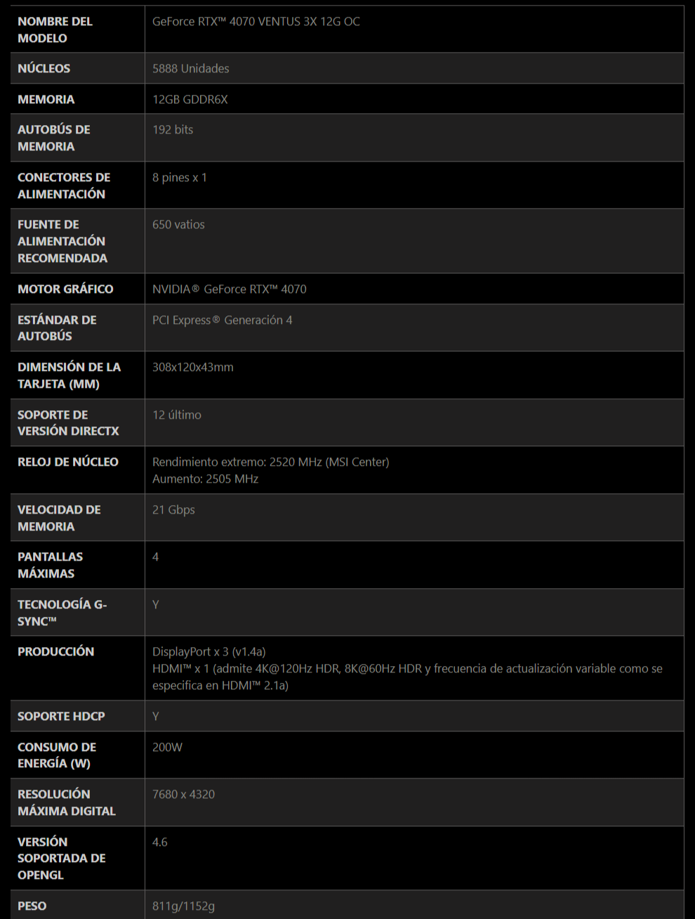 SKU: RTX 4070 VENTUS 3X 12G OC Categoría: