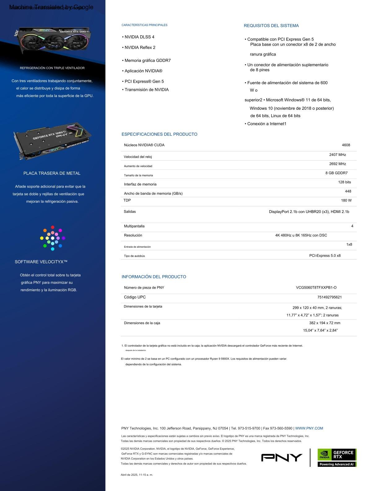 Tarjeta De Video PNY NVIDIA GeForce RTX 5060 Ti EPIC-X RGB OC – 8GB 128-bits GDDR7, PCI Express x16 5.0, Cuda 4608, x2 8Pin, DP, HDMI, Negro