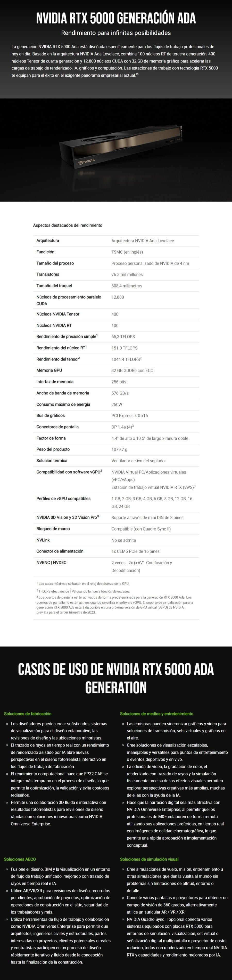 • La generación NVIDIA RTX 5000 Ada está diseñada específicamente para los flujos de trabajo profesionales de hoy en día.