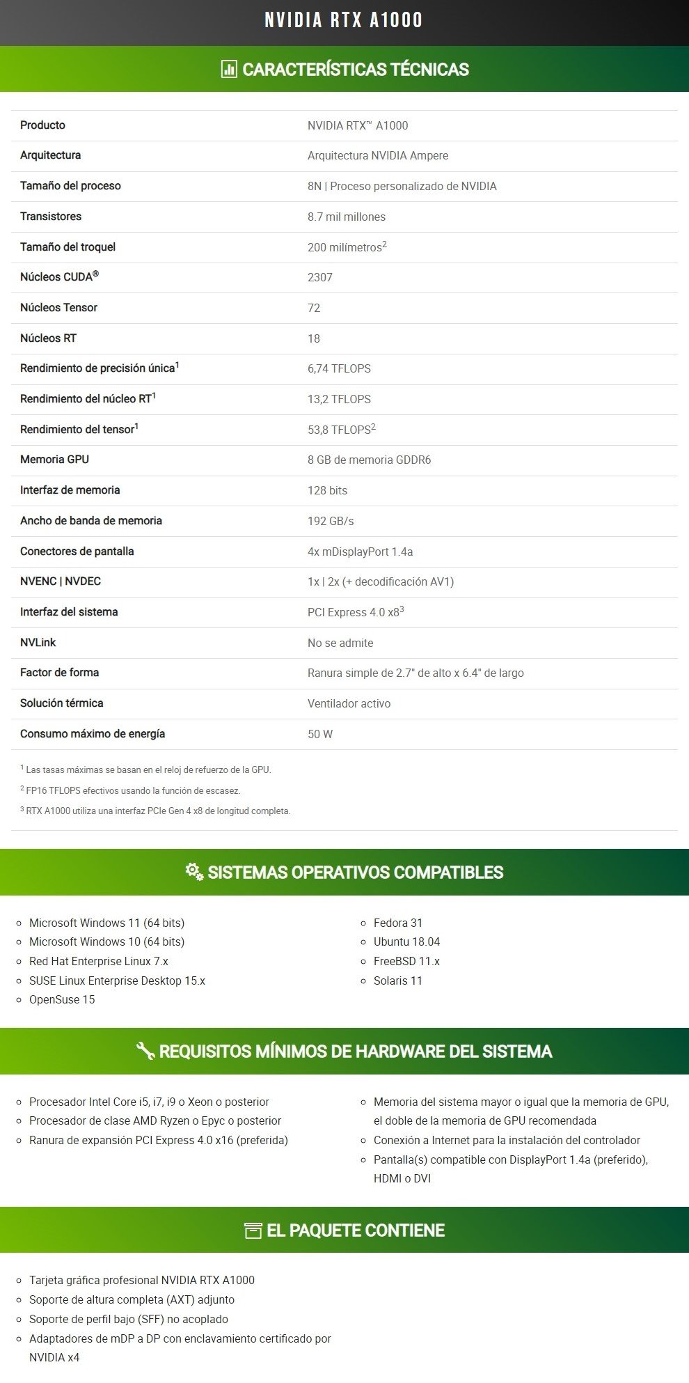 • Basada en la arquitectura de GPU NVIDIA Ampere, la GPU NVIDIA RTX A1000 es una solución potente y de bajo perfil que ofrece el rendimiento y las capacidades que requieren las aplicaciones profesionales exigentes.