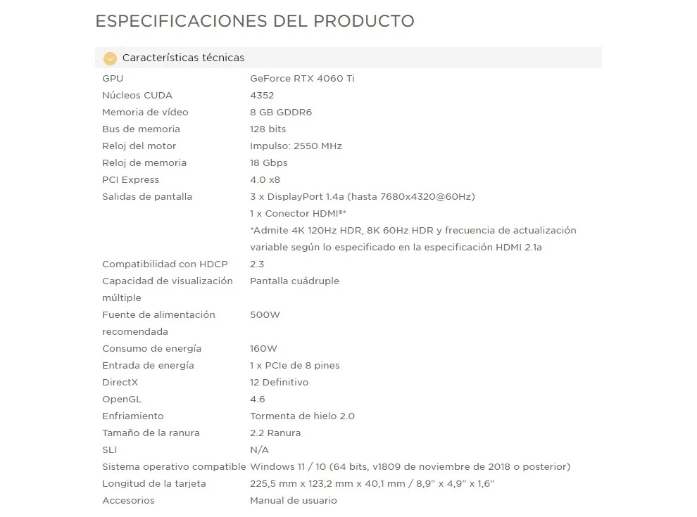 Tarjeta De Video ZOTAC GAMING GeForce RTX 4060 Ti