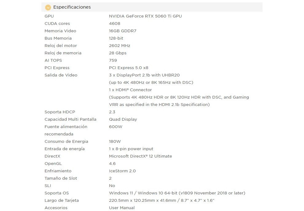 Tarjeta De Video Zotac NVIDIA GeForce RTX 5060 Ti TWIN EDGE OC Edition