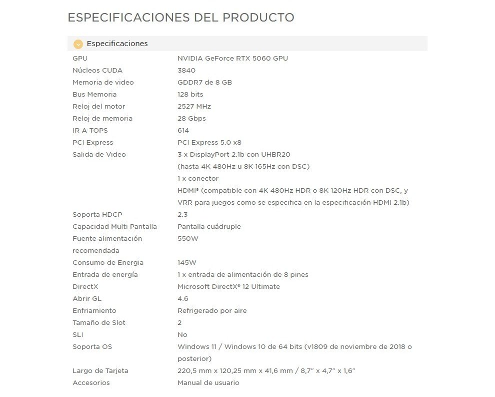 Nota: La precisión de la información, presentación, imágenes, título o especificaciones del producto pueden cambiar sin previo aviso.