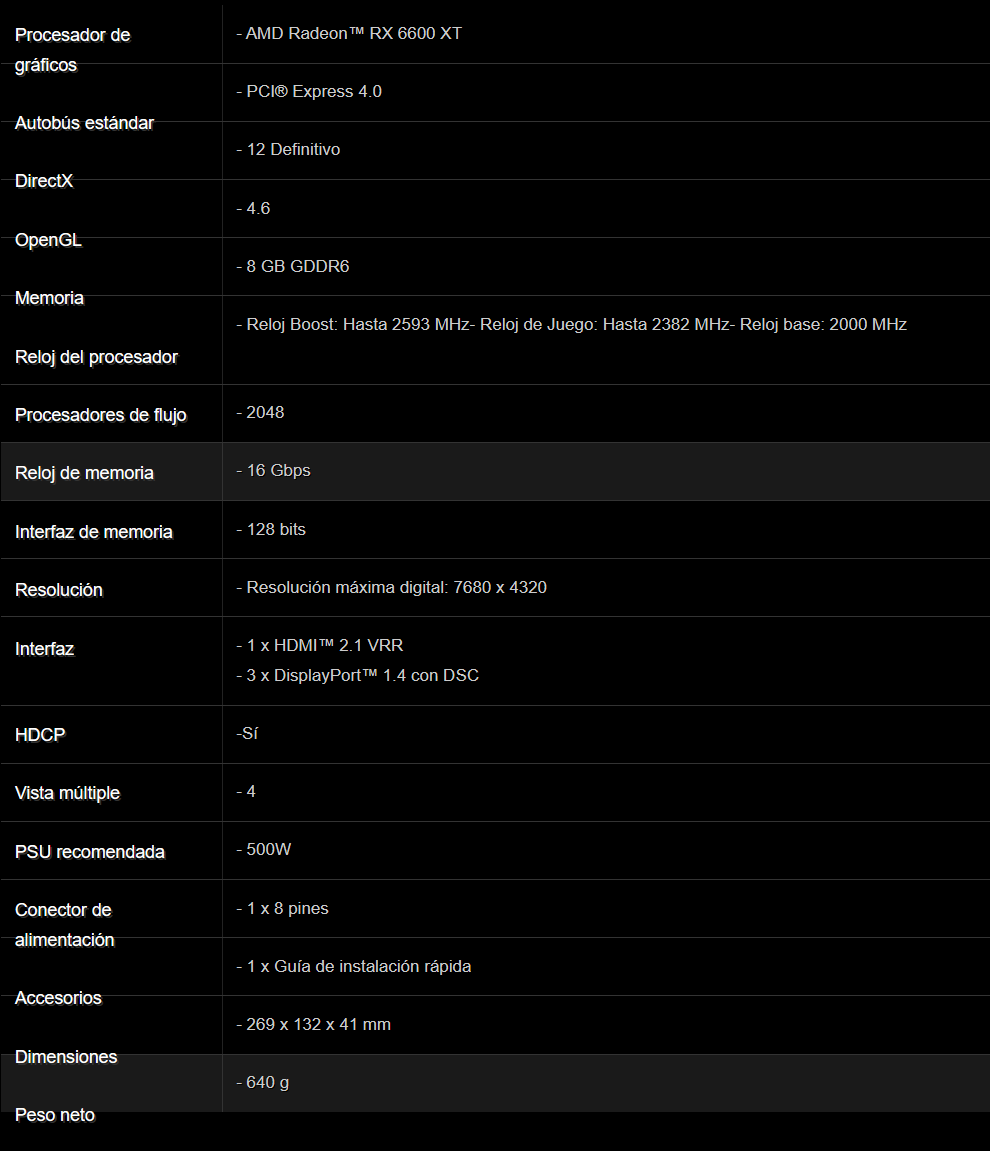 Sé el primero en valorar “Tarjeta De Video ASROCK CHALLENGER RX6600 CLD 8G / Radeon RX 6600 / 8GB GDDR6 / 128 bit / Núcleos Cuda 2048 / Pci Express Gen 4 / X1 Hdmi, X3 Dp / X1 8Pin / 90-GA2RZZ-00UANF”