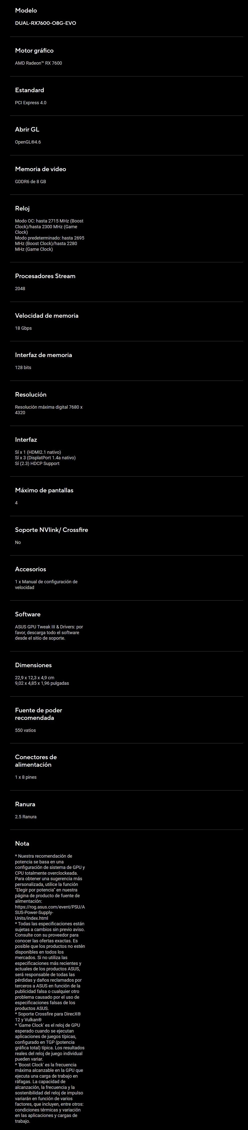 SKU: DUAL-RX7600-O8G-EVO Categoría: