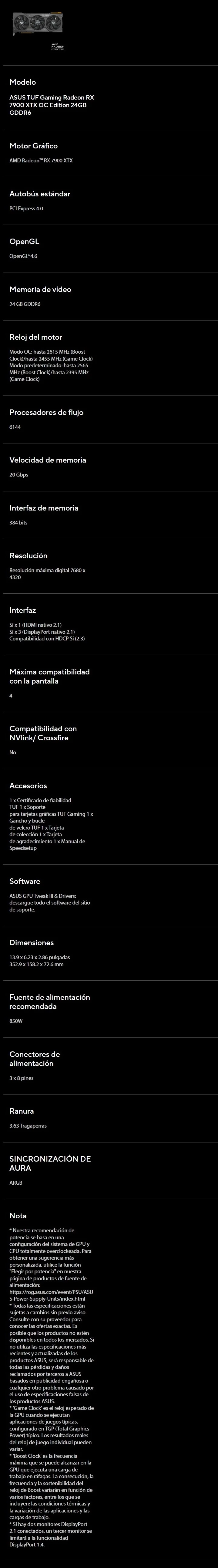 SKU: TUF-RX7900XTX-O24G-GAMING Categoría: