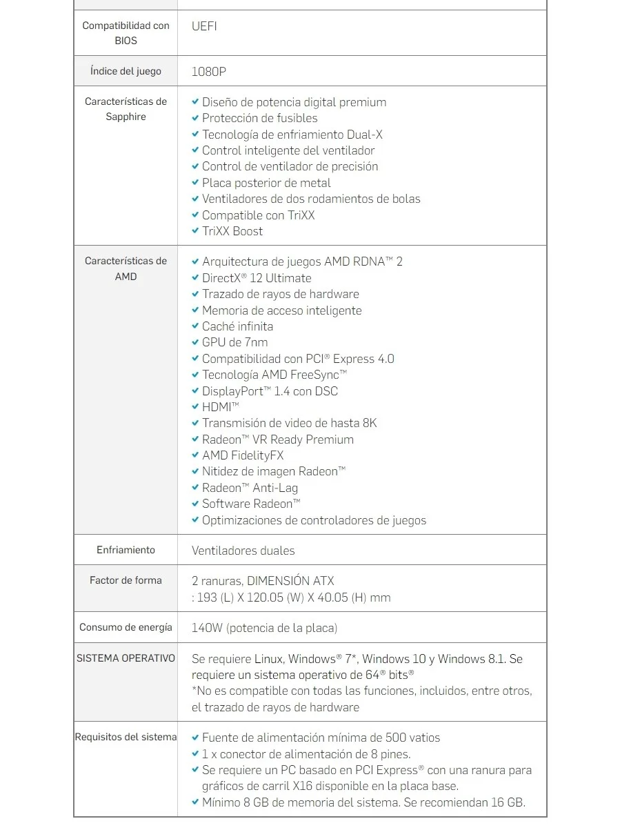 Sé el primero en valorar “Tarjeta De Video SAPPHIRE Pulse RX 6600 Gaming / 8GB GDDR6 / 7680X4320 / 128bit / Pci-E 4.0 / Hdmi, Dp / 2491MHz / 8 Pines / 11310-01-20G”