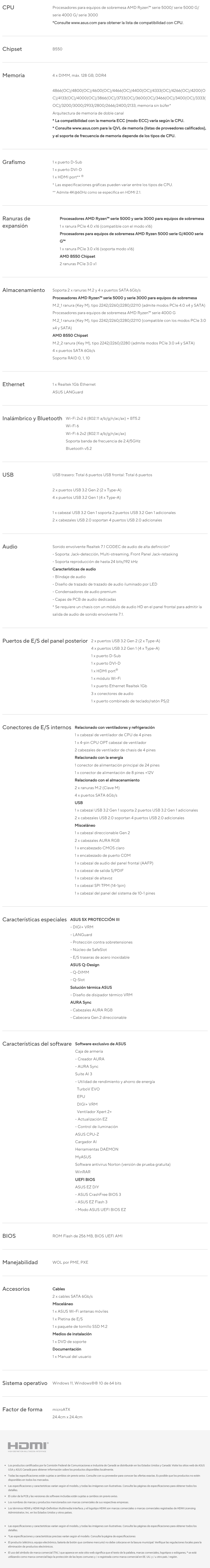 Tarjeta Madre Asus PRIME B550M-A WIFI II / Socket AM4 / 128GB X4 Ddr4 4866Mhz / Hdmi, Vga / Pcie-4.0 / M.2 / Wifi6 / MICRO ATX