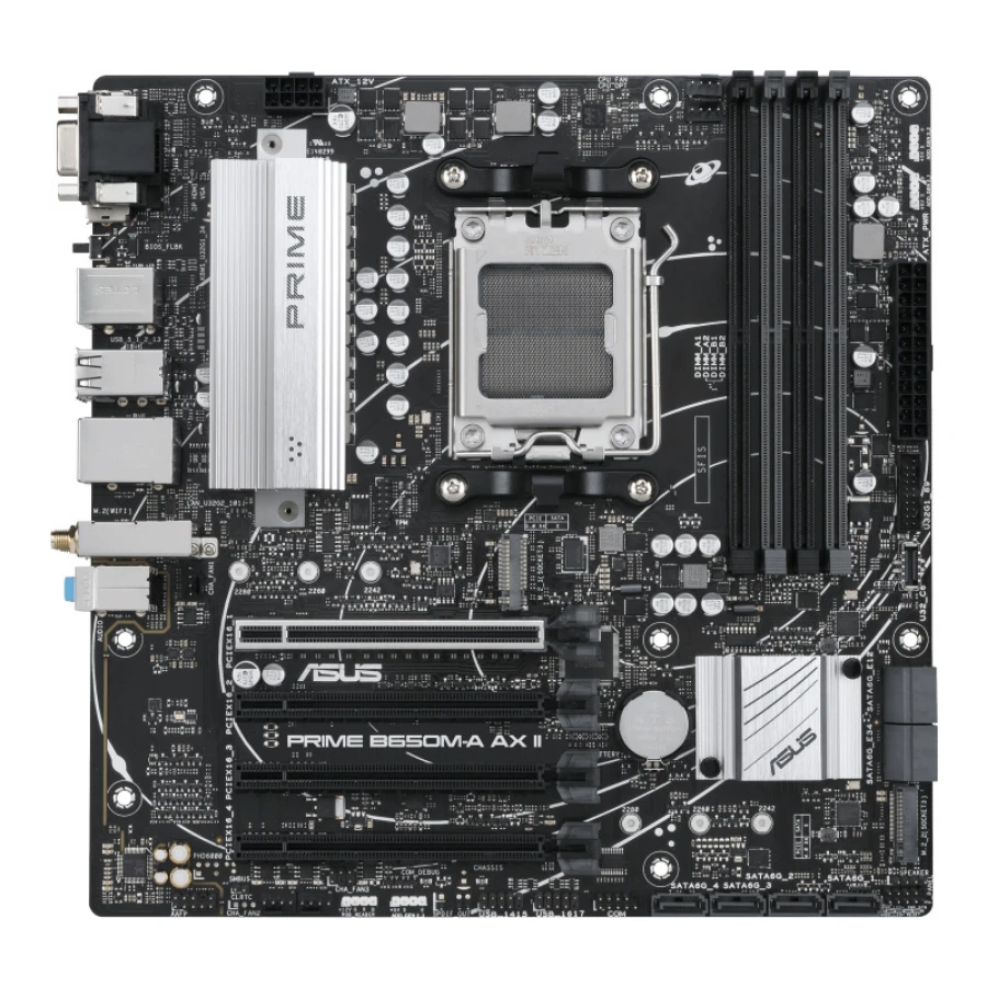 Tarjeta Madre ASUS Prime B650M-A AX II / AM5 / 192GB X4 DDR5 7200Mhz / M.2 PCIe 5.0 / Dp, Vga, Hdmi / Wifi, Bluetooth / Micro ATX