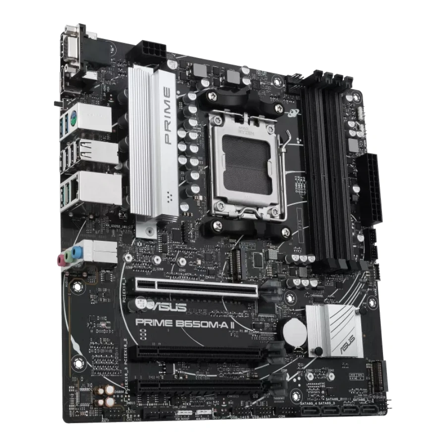 Tarjeta Madre ASUS PRIME B650M-A II – Socket AM5, 192GB X4 DDR5 7200Mhz OC*, Hdmi, Dp, Vga, M.2 PCIe 5.0, USB 3.2 – Micro-ATX