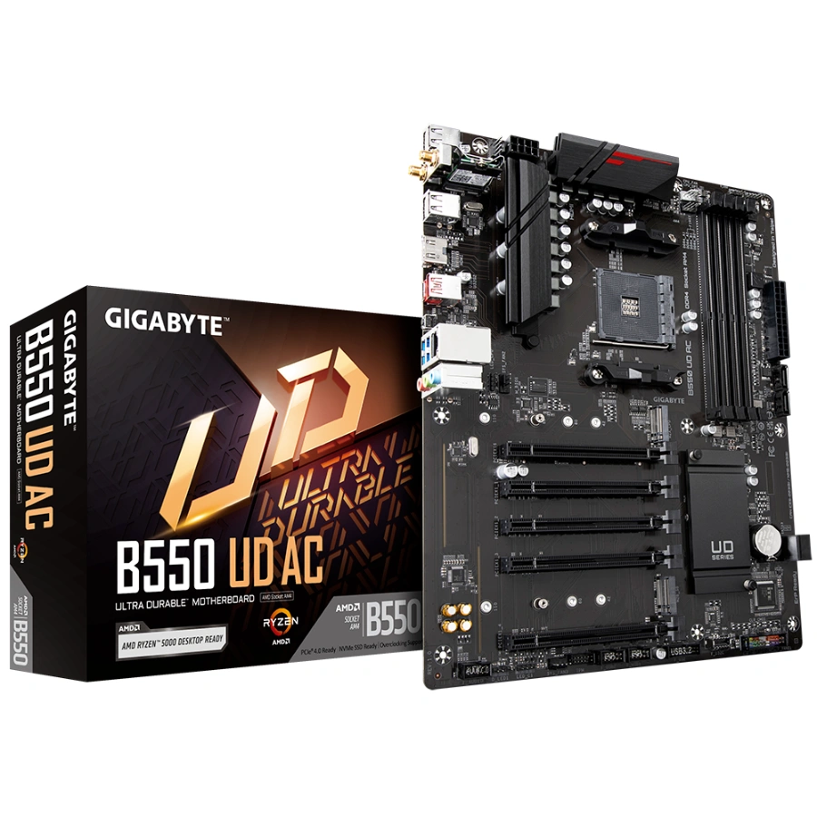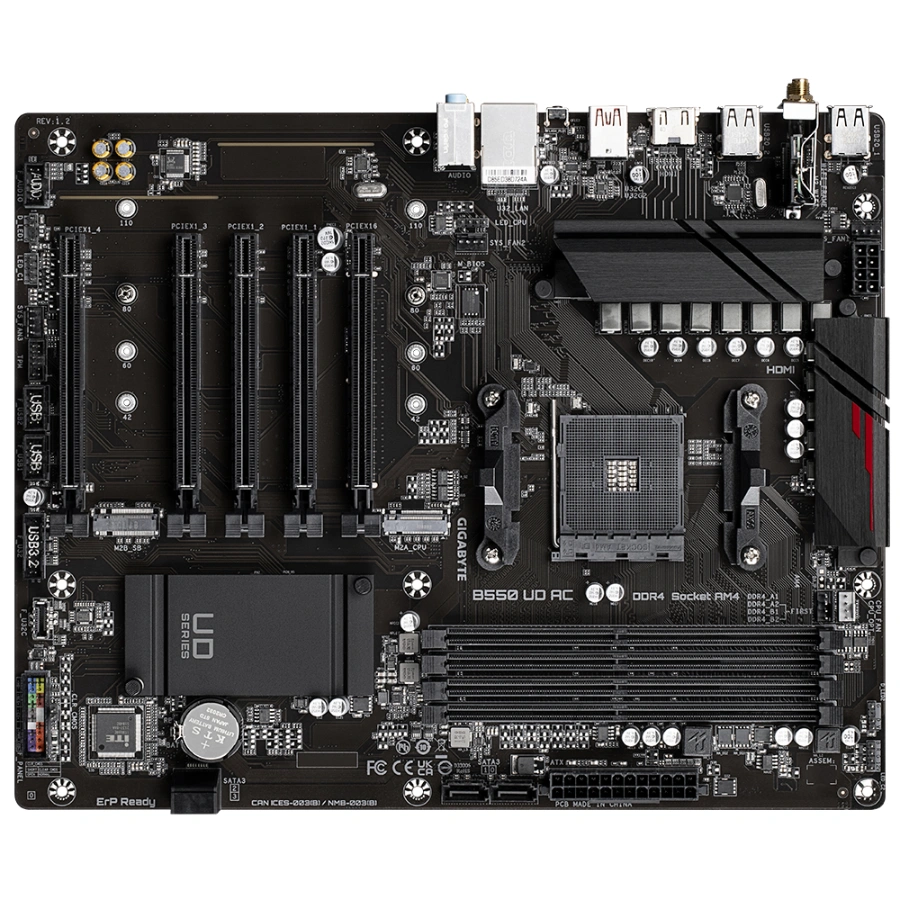 Tarjeta Madre Gigabyte B550 UD AC – AMD B550, Socket AM4, X4 DDR4 hasta 128GB 4733MHz, PCIe 4.0, Wi-Fi 802.11ac + Bluetooth 5.0 – ATX