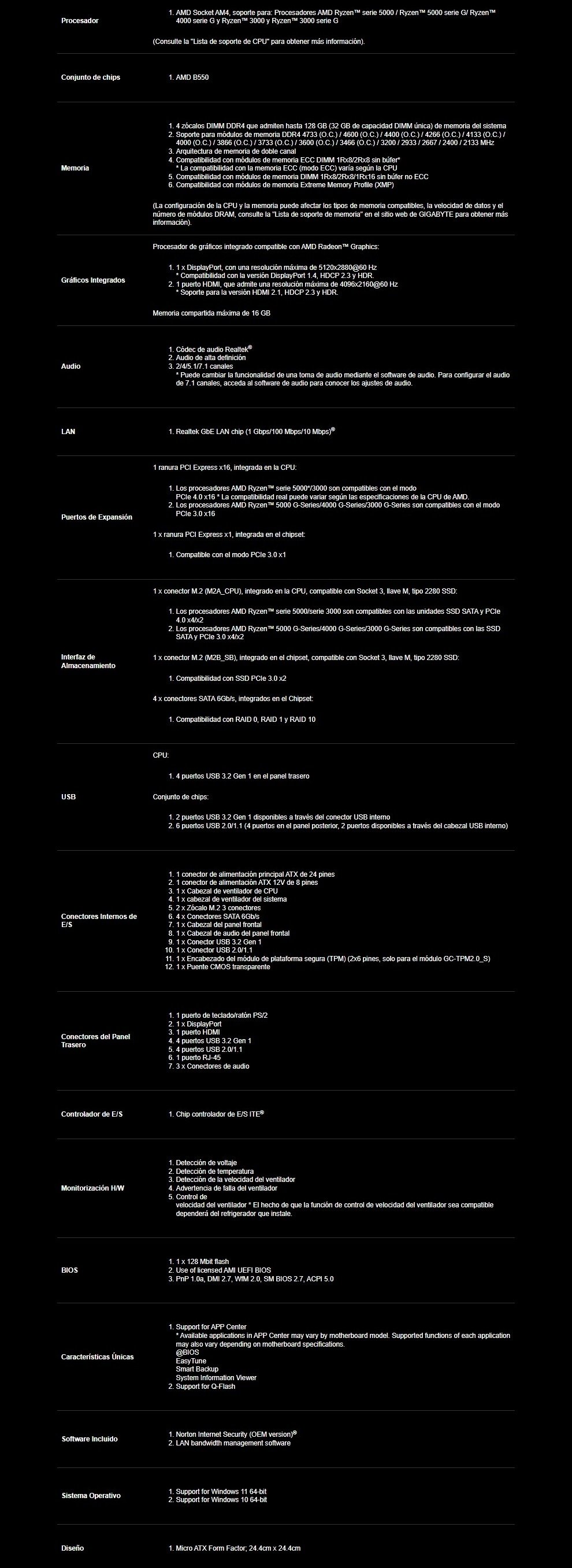 Sé el primero en valorar “Tarjeta Madre GIGABYTE B550M K / Socket AM4 / 128GB X4 DDR4 4733MHz / HDMI, DP / USB 3.2 Gen 1, USB 2.0 / M.2 PCIe 4.0 / Micro-ATX”