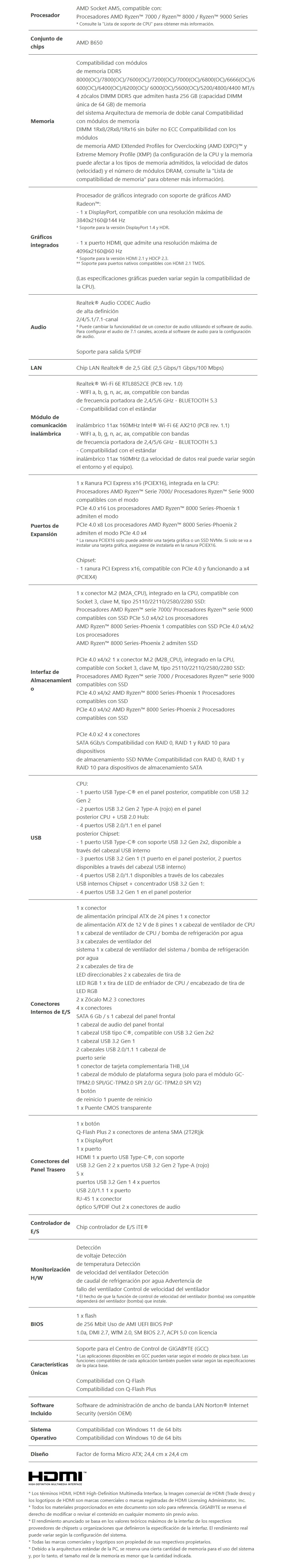 • AMD Socket AM5: Admite procesadores AMD Ryzen™ 7000 / Ryzen™ 8000 / Ryzen™ 9000 Series