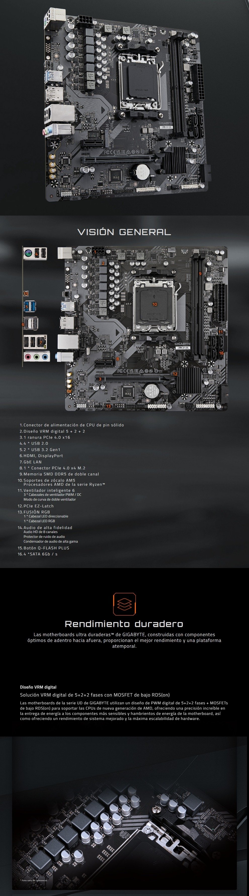 Tarjeta Madre GIGABYTE B650M H / Socket AM5 / 128GB X2 DDR5 6400MHz / HDMI, DP / USB 3.2 Gen 1, USB 2.0 / M.2 PCIe 4.0 / Micro-ATX