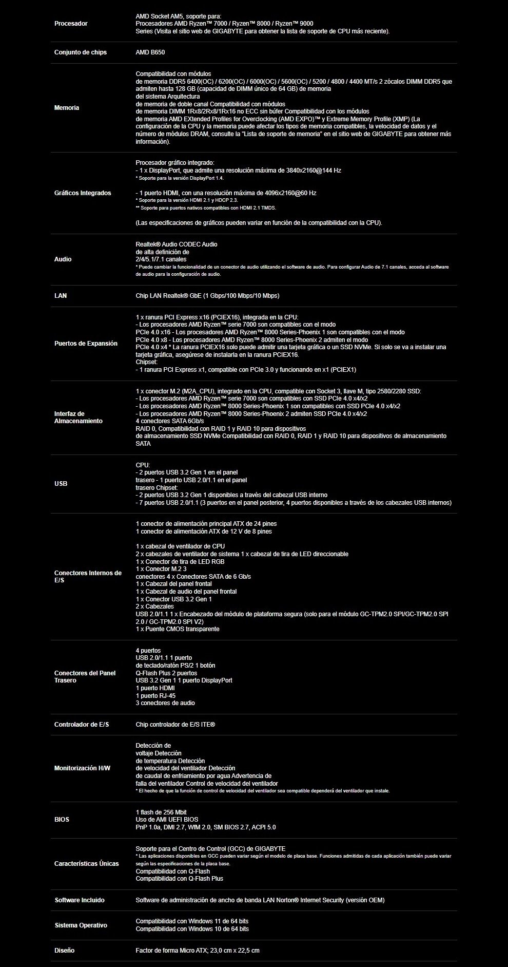 • AMD Socket AM5: compatible con los procesadores AMD Ryzen 7000 / Ryzen 8000 / Ryzen 9000 Series