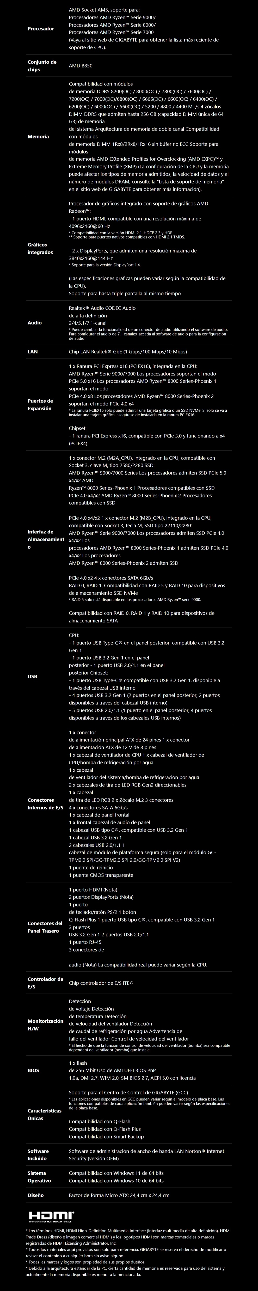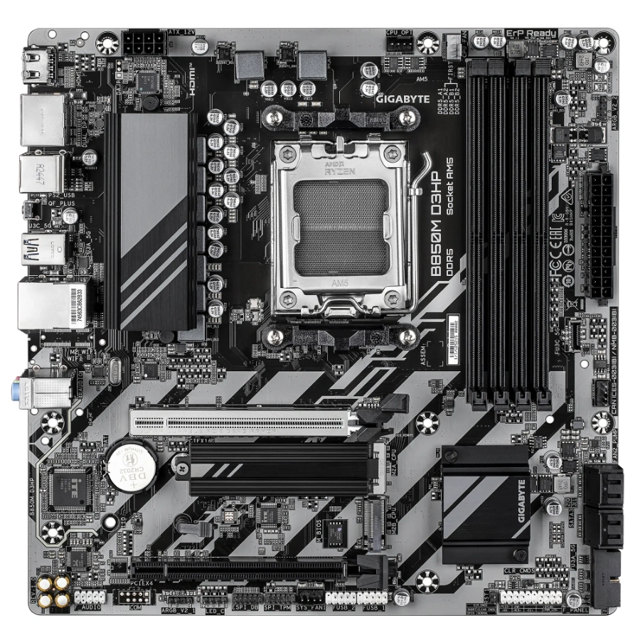 Tarjeta Madre GIGABYTE B850M D3HP – Socket AM5, 256GB X4 DDR5 8200Mhz OC*, Hdmi, Dp, M.2 PCIe 5.0, USB 3.2/2.0 – Micro-ATX