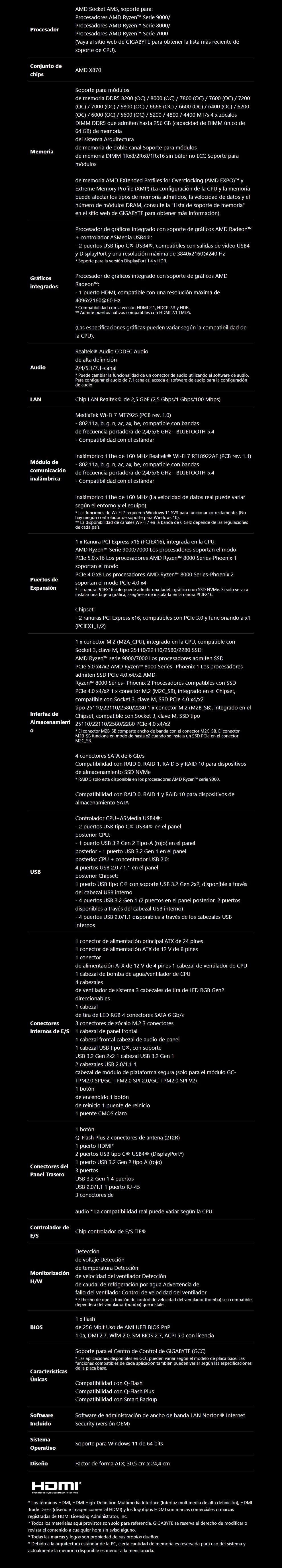 • AMD Socket AM5: Compatible con procesadores AMD Ryzen™ de las series 9000 / 8000 / 7000