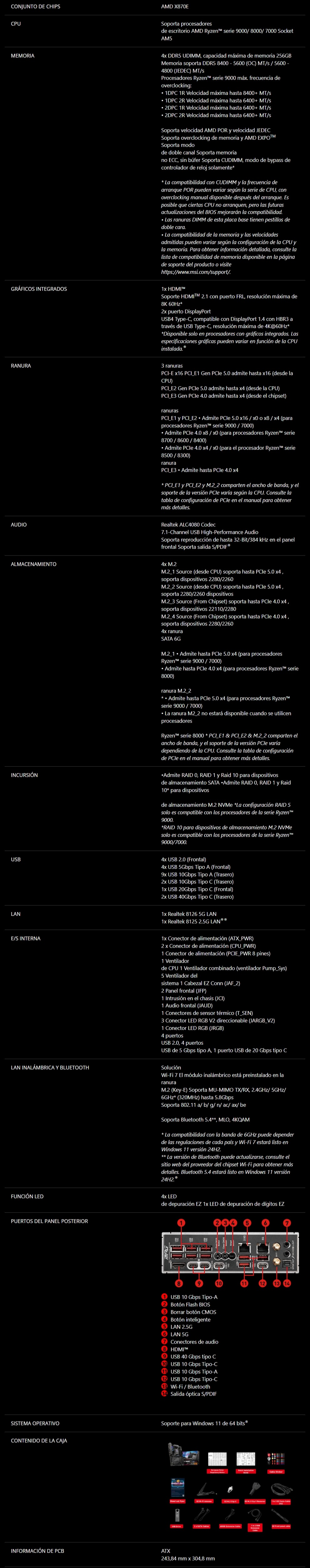 • ompatible con procesadores de escritorio AMD Ryzen™ serie 9000 / 8000 / 7000