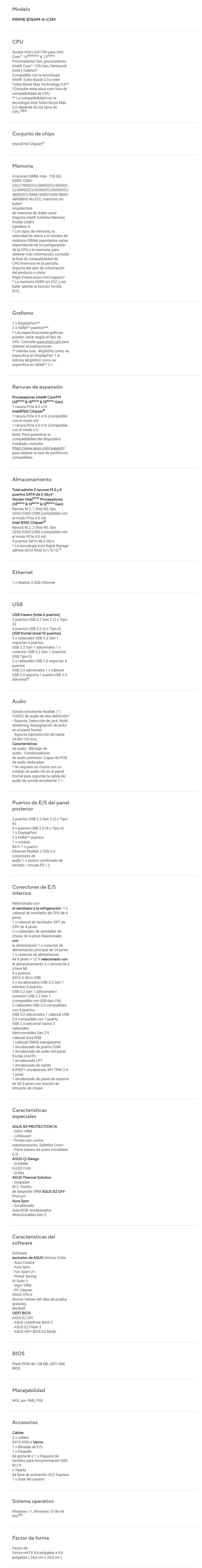 Tarjeta Madre ASUS Prime B760M-A-CSM – INTEL Socket LGA 1700, Micro-ATX, 128GB X4 DDR5 7200Mhz OC*, Hdmi, Dp – PCI-e 4.0