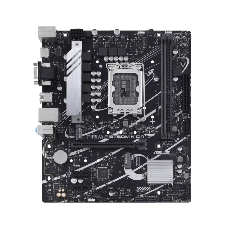 Tarjeta Madre ASUS PRIME B760M-K D4 / Socket LGA1700 / 64GB X2 DDR4 5333MHz / VGA, HDMI / USB 3.2, 2.0 / M.2 PCIe 4.0 / Micro ATX