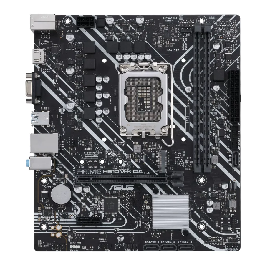 Tarjeta Madre Asus Prime H610M-K D4 / Intel S-1700 / 12a Gen / x2 Ddr4 3200Mhz / Hdmi, Vga / D-Sub / M.2 / x2 Usb3.2 / Micro Atx / Gama Básica