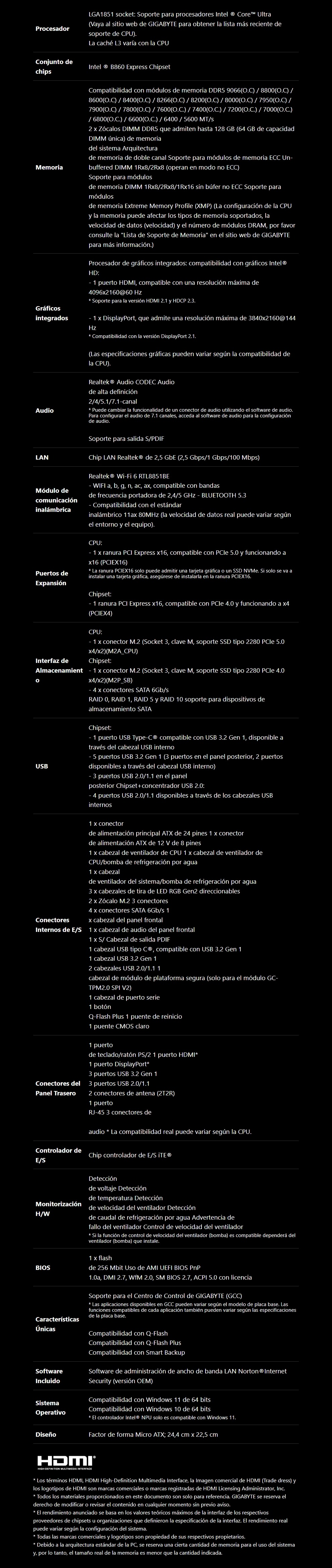 Tarjeta Madre GIGABYTE B860M EAGLE WIFI6 – Socket LGA 1851, 128GB X2 DDR5 9066Mhz, Hdmi, Dp, Wifi6, Bluetooth, M.2 PCIe 5.0 – Micro-ATX