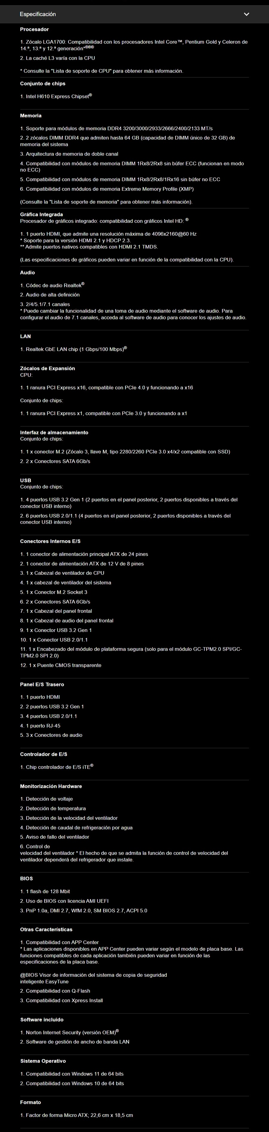 Sé el primero en valorar “Tarjeta Madre GIGABYTE H610M K DDR4 / Micro ATX / Socket LGA1700 / 64GB X2 DDR4 3200MHz / HDMI / USB 3.2, USB 2.0 / NVMe M.2 PCIe 3.0”